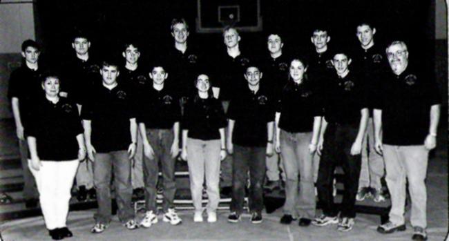 | Back Row: Matt Miller, Jeremy Braun, Caleb Smith, David Holdinghaus, Co-Captain Dan Culp, Brad Yamnitz, Cory Flanagin, and Adam Culp Front Row: Head Coach Mickie Watkins, Captain Keith McDaniel, Matt Rodriguez, JV Captain Hannah Smith, Alex Ridolfi, Brandy Lanius, Ezra Chaskelson, and Assistant Coach Billy Watkins Photo Credit: SHS Talon Yearbook, Volume 53 (New Horizons). |