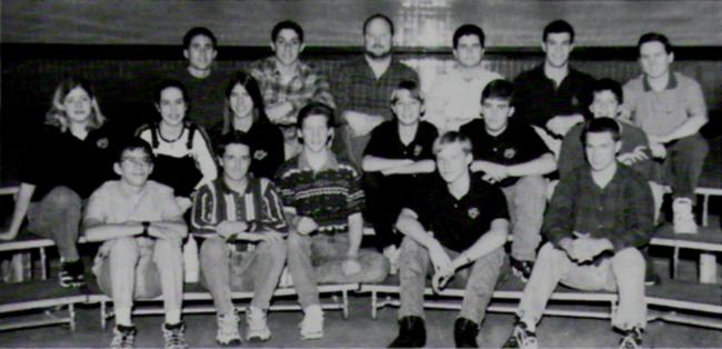 | Back Row: Tyson Strauser, Michael Rubenstein, Coach David Miller, Jason Bell, Zack Rennick, and Ben Castillo Middle Row: Mary Payne, Courtney Busse-Jones, Rachel AuBuchon, David Holdinghaus, Keith McDaniel, and JV Captain Josh Regan Front Row: Cory Flanagin, Brad Yamnitz, Troy Wagers, Dan Culp, and Captain Mike Hewlett Photo Credit: SHS Talon Yearbook, Volume 50 (Life As We Know It). |
